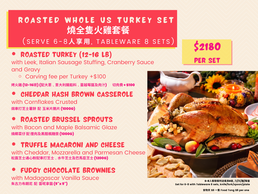燒全隻火雞節日套餐 Roasted Whole Turkey Set Festival Menu <Serve 6-8人份>